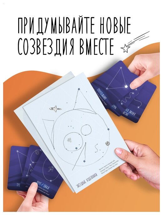 Каждый раунд игроки получают задания с фигурами, которые необходимо изобразить на звёздном атласе. Ведущий не знает, что именно за фигура досталась звёздным художникам и должен понять это по их рисункам. Сделать правильный выбор ему помогут карты слов, среди которых и нужно найти верное созвездие!