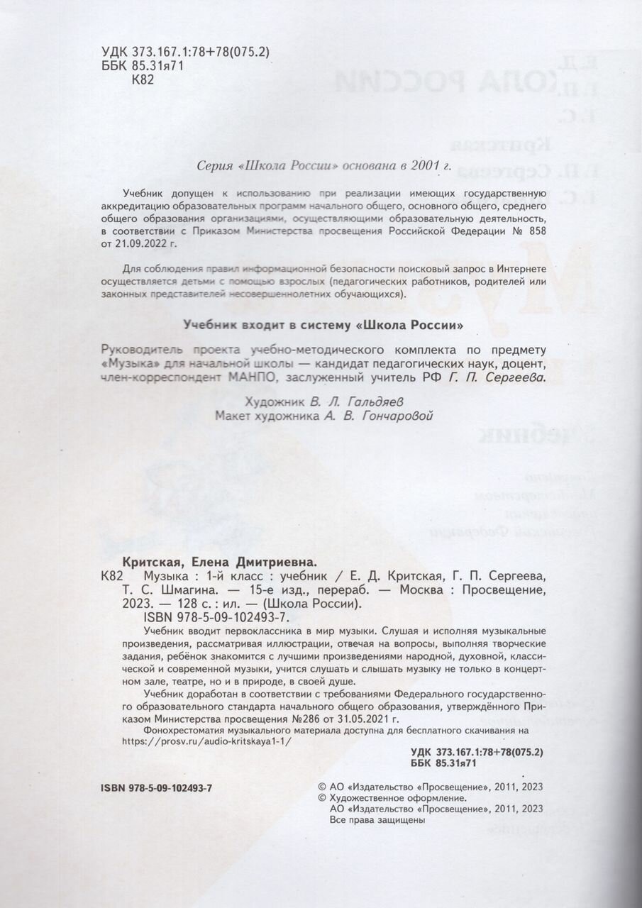 | Автор(ы) | Галина Петровна Сергеева, Татьяна Сергеевна Шмагина, Елена Дмитриевна Критская |