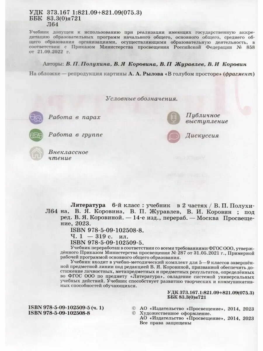 Литература. 6 класс. Учебник. В 2-х частях (Виктор Петрович Журавлев, Валентина Павловна Полухина, Вера Яновна Коровина); Просвещение, 2025