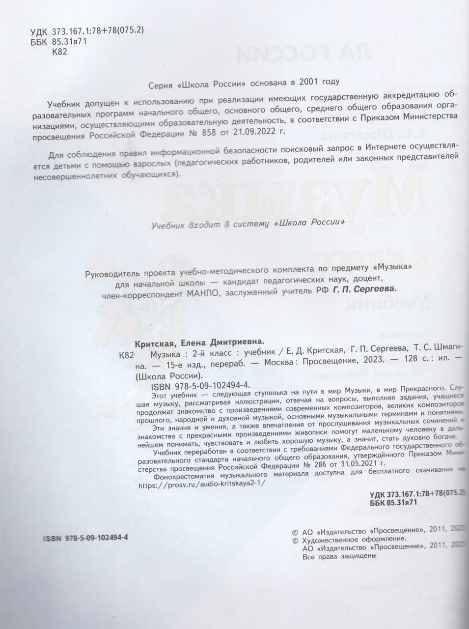 Книга: Музыка. 2 класс. Учебник (Критская Елена Дмитриевна, Сергеева Галина Петровна, Шмагина Татьяна Сергеевна); Просвещение, 2023