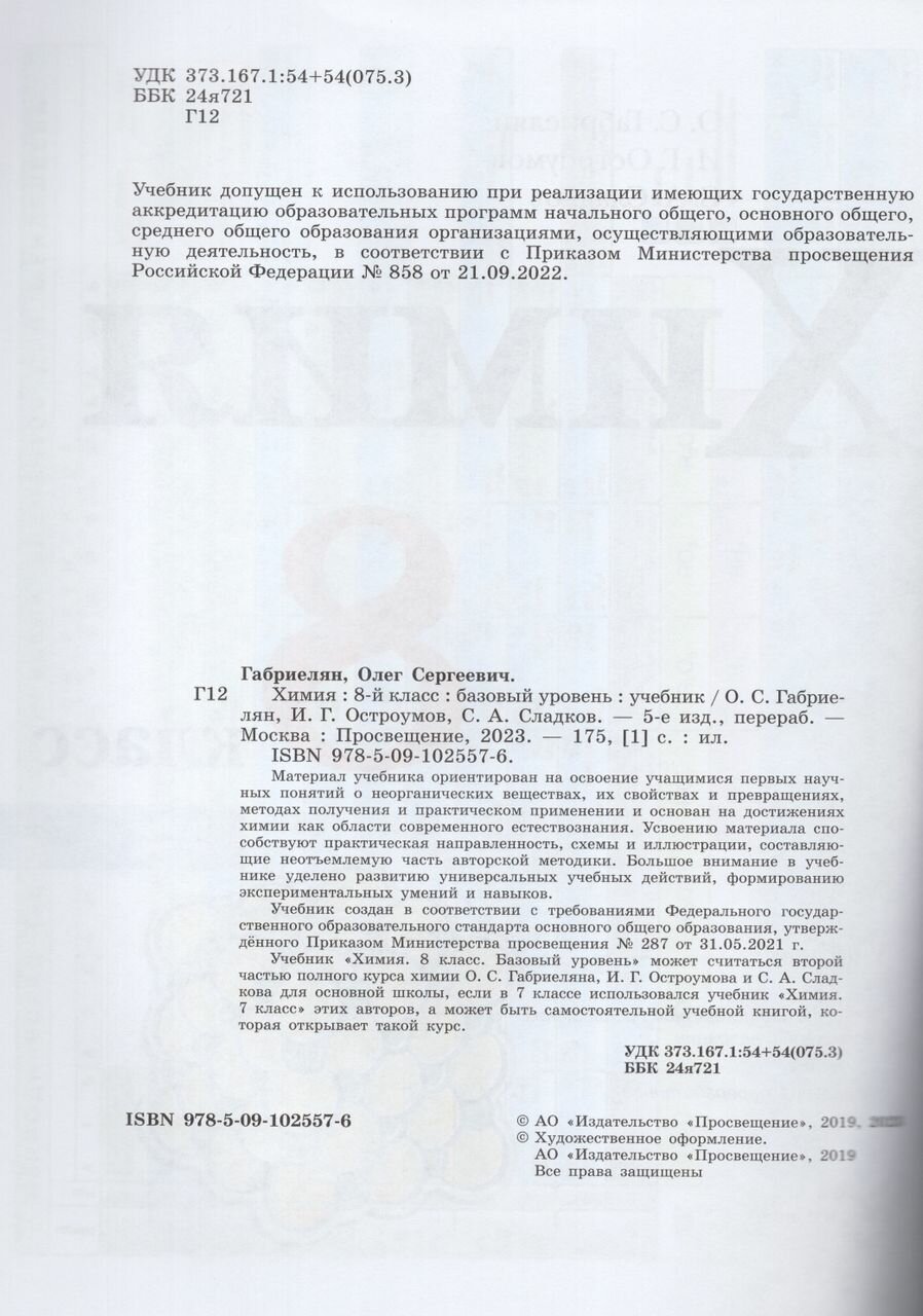 Химия. 8 класс. Учебник. Базовый уровень. ФГОС (Габриелян Олег Сергеевич, Остроумов Игорь Геннадьевич, Сладков Сергей Анатольевич); Просвещение, 2024