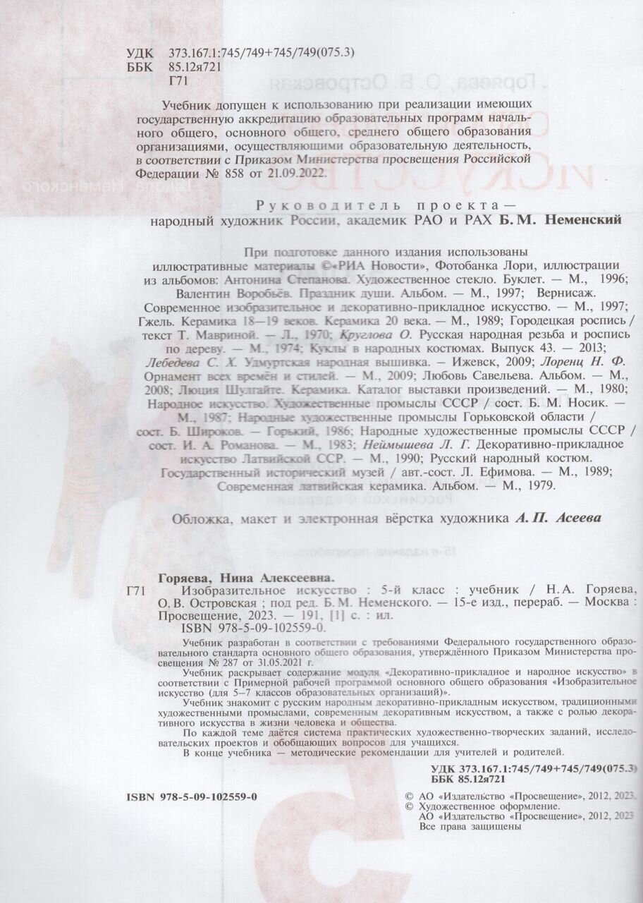 Сервис сравнения цен СкидкаГИД предлагает сравнить цены на товар «Книга: Изобразительное искусство. 5 класс. Учебник. ФГОС (Горяева Нина Алексеевна; Островская Ольга Васильевна); Просвещение, 2023»