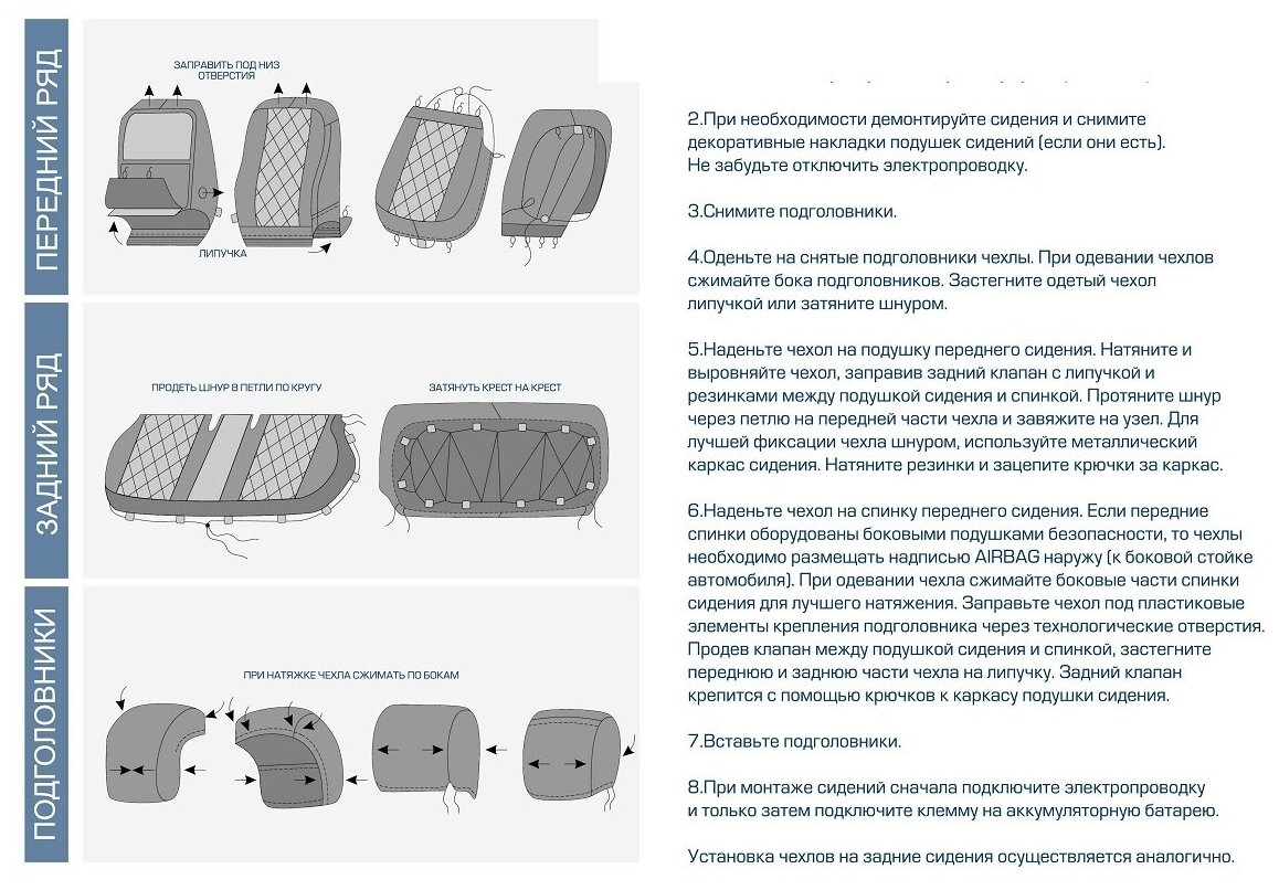 - имеют специальный шов в передних чехлах, который не мешает срабатыванию подушки безопасности;