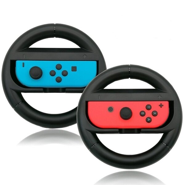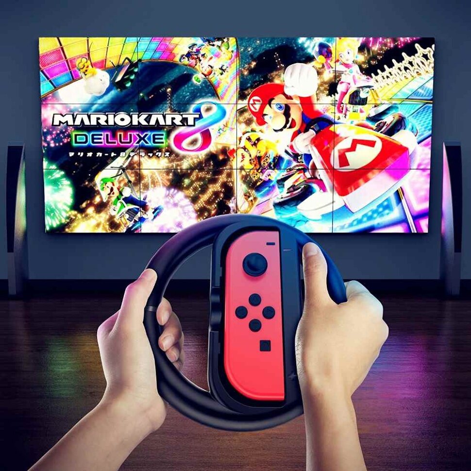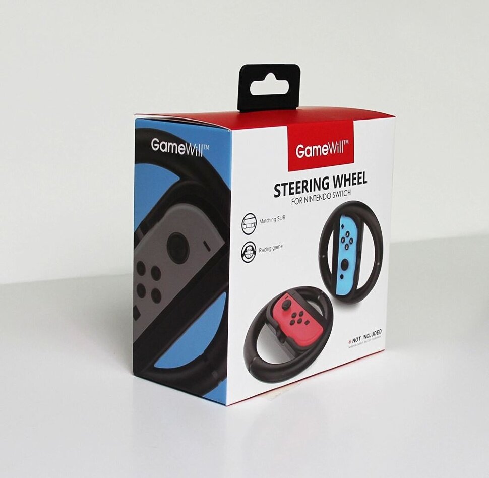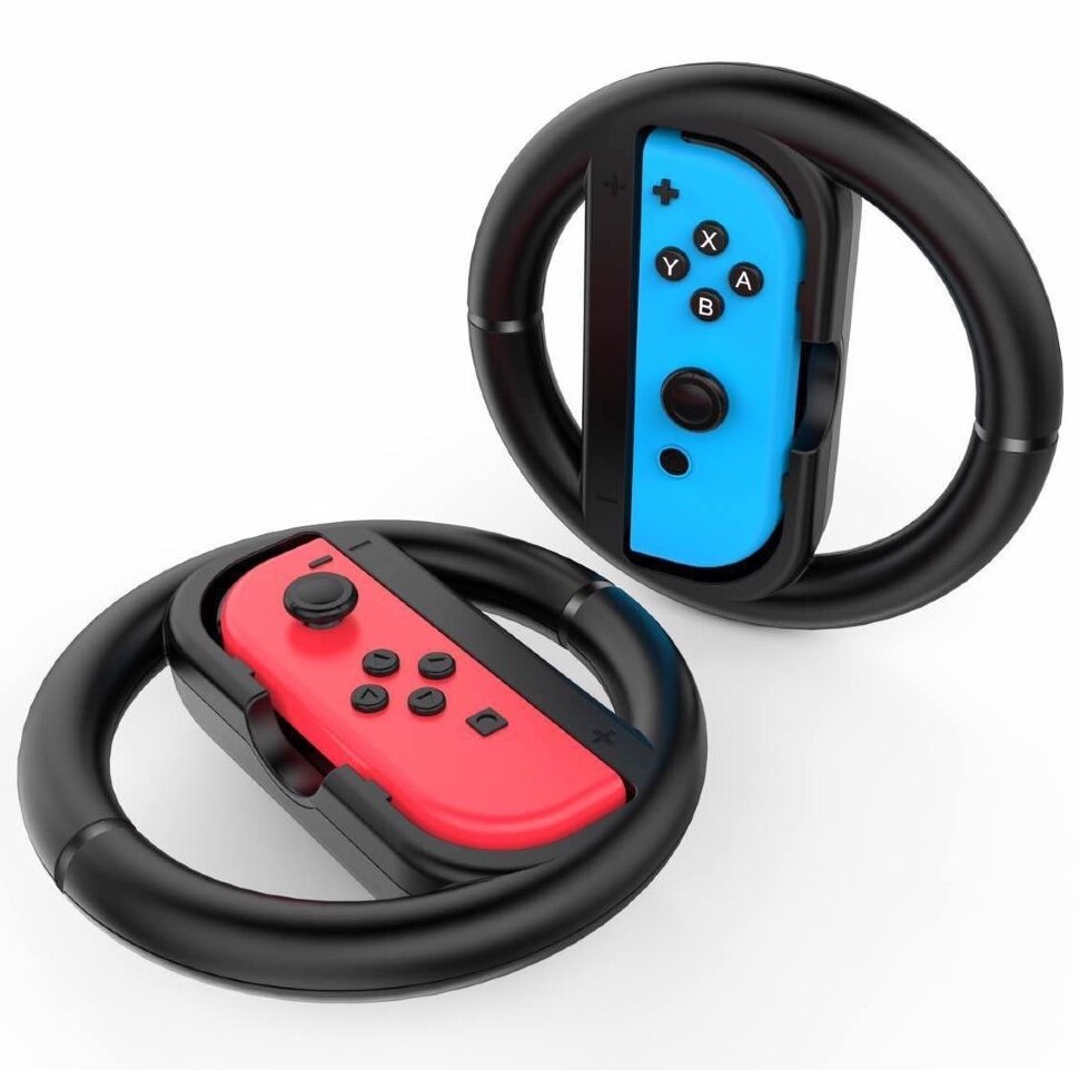 Nintendo Switch Joy-Con Wheel Pair представляет собой руль, к которому можно прикрепить контроллер Joy-Con. В комплект входит два руля, на любом из которых фиксируется как левый, так и правый Joy-Con.
