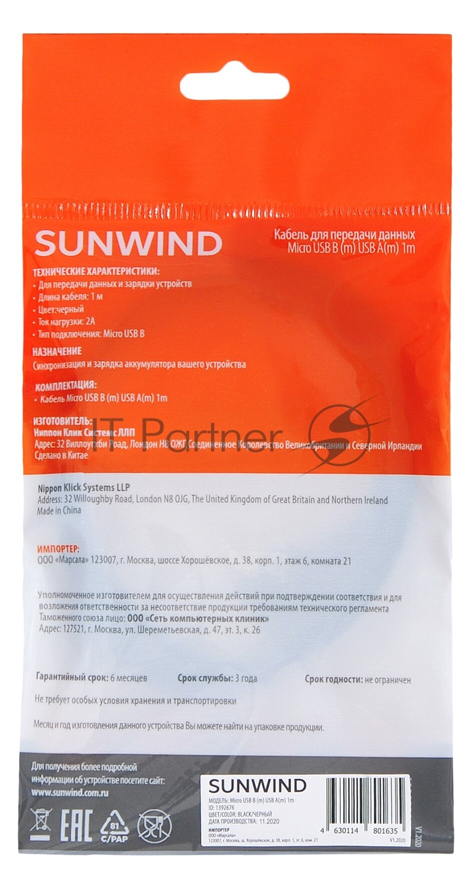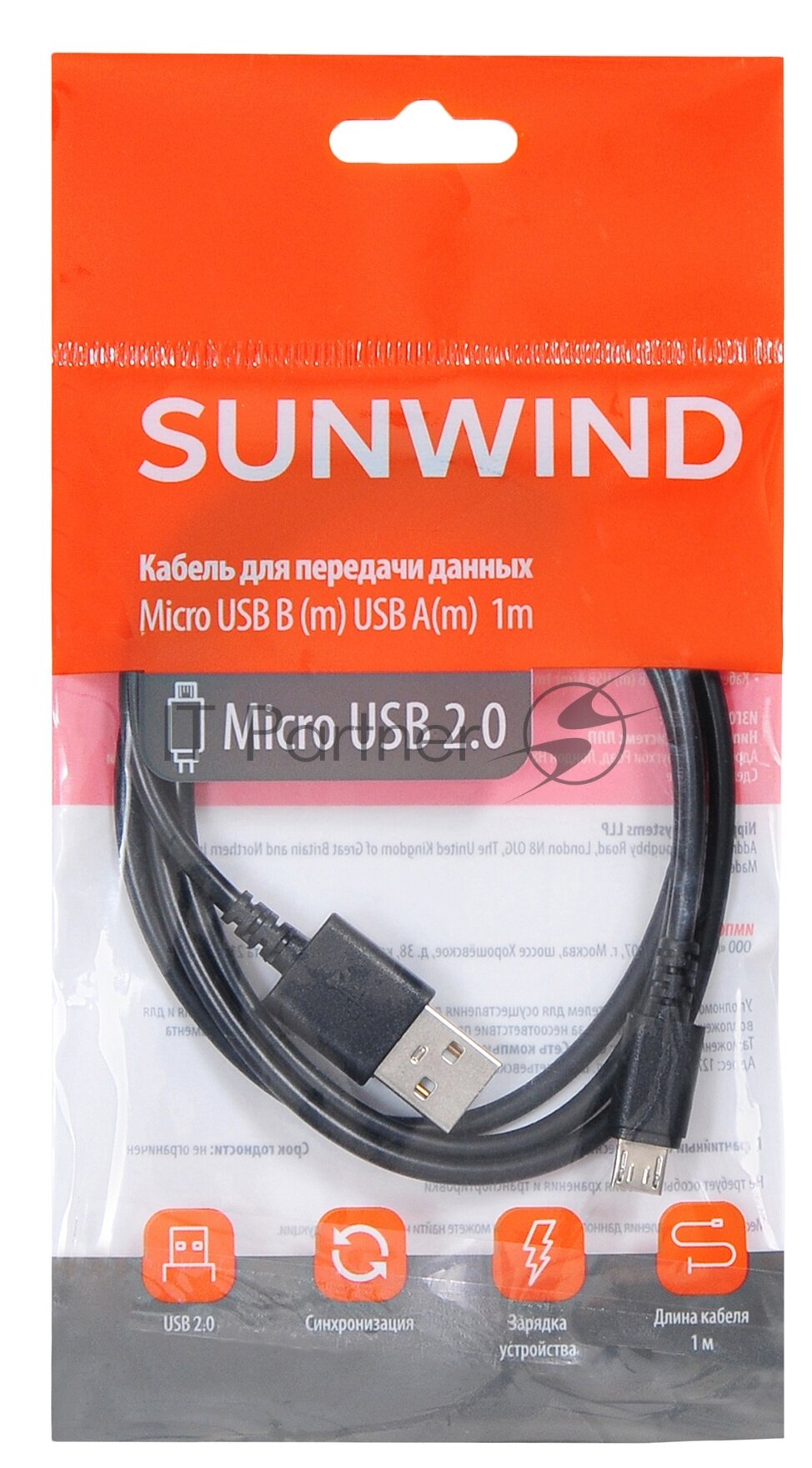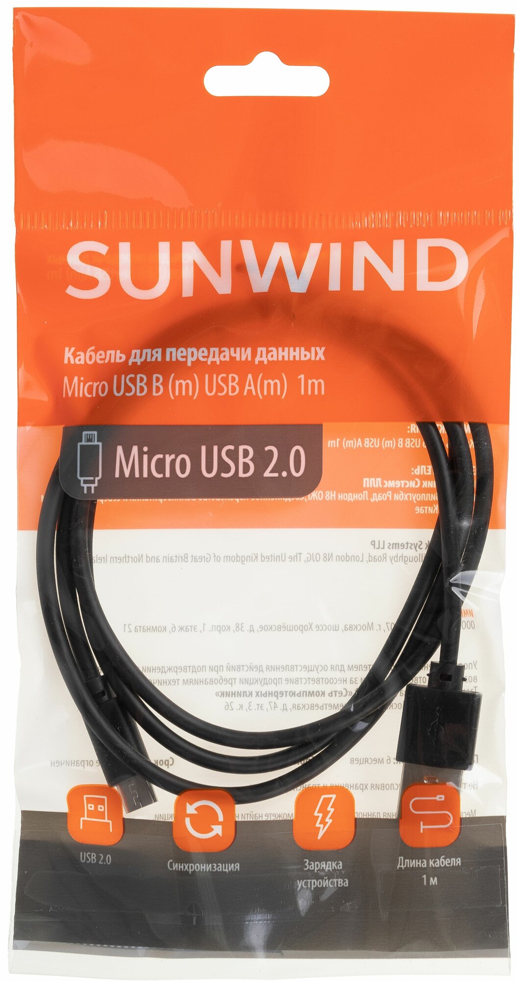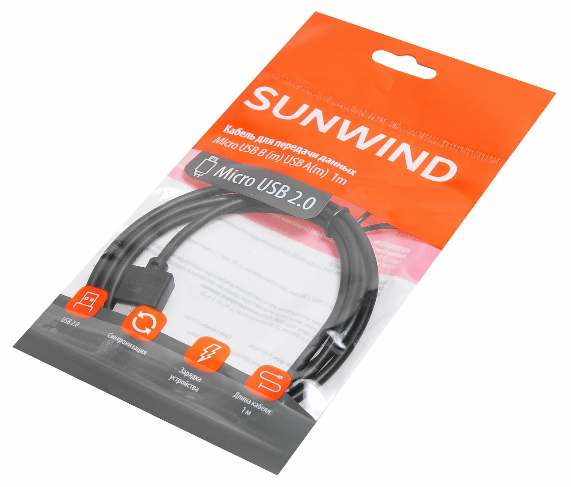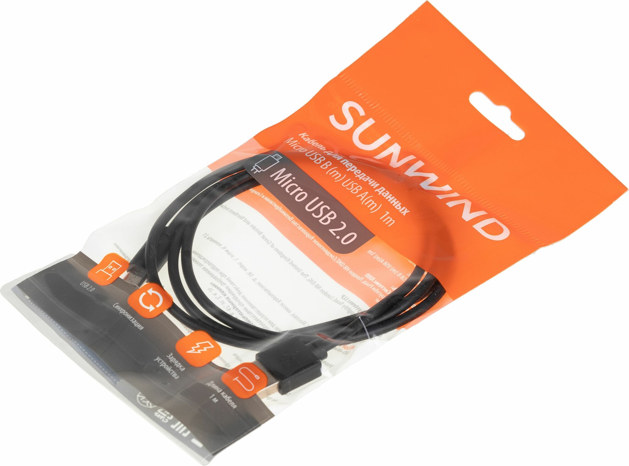 Кабель SunWind черный, коннекторы USB (m)-micro USB (m), длина 1м
