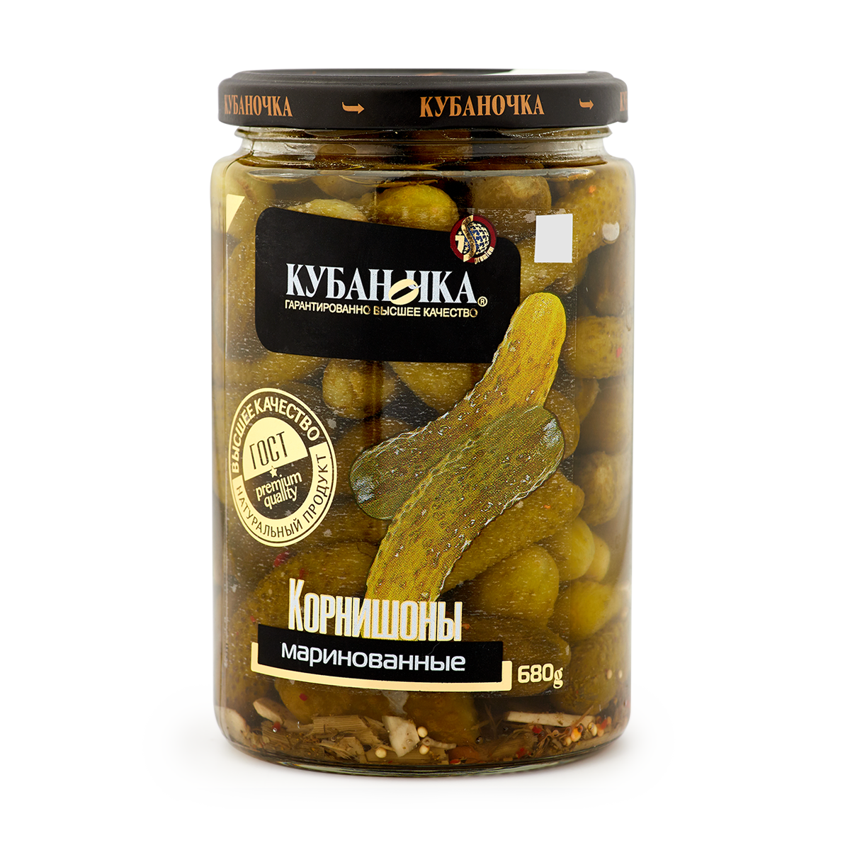 Корнишоны маринованные «Кубаночка» - традиционная рецептура для всех любителей пряных закусок!Короткие огурцы длиной 3-6 см схожи своими вкусовыми характеристиками с обычными, но отличаются удобством поедания и звонким хрустом при укусе. Производится в удобной упаковке, в стеклянной банке твист, с закручивающейся крышкой. Соленые огурцы с зеленью в виде готовой овощьной закуски, удобно взять собой на отдых, на природу или для пикника.Для производства консервированных огурчиков, мы используем авторскую технологию маринада – добавляем кисло-сладкие пряности, зерна горчицы и чеснок, что придает им легкую пикантность. Баночка огурцов пастерилизованы по всем стандартам качества, за счет этого оно сохраняет полезный состав и вкусовые характеристики.Премиум-качество; На 100% натуральный состав; Без примесей и консервантов; Отменный вкус и польза состава; Современная технология производства.Мини корнишоны отлично подойдут в качестве закуски к любимым напиткам или для приготовления салатов, первых блюд и бутербродов.А еще они очень полезные для здоровья, так как в их составе сохранились витамины группы В, А, Е, С, железо, фосфор, калий и не только.С ними можно не беспокоиться за лишний вес, они регулируют обменные процессы, помогают при обезвоживании организма и не только.Маринованные корнишоны «Кубаночка» станут главным атрибутом ужина для всей семьи.