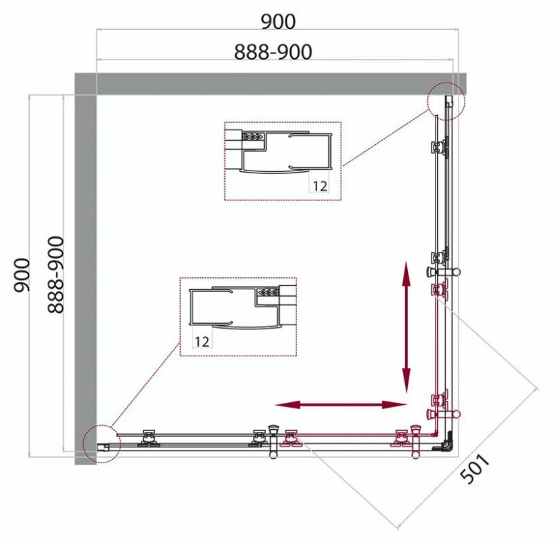 - Регулировка ширины предусмотрена за счет боковых профилей, что позволяет без проблем установить изделие даже при кривизне стен.