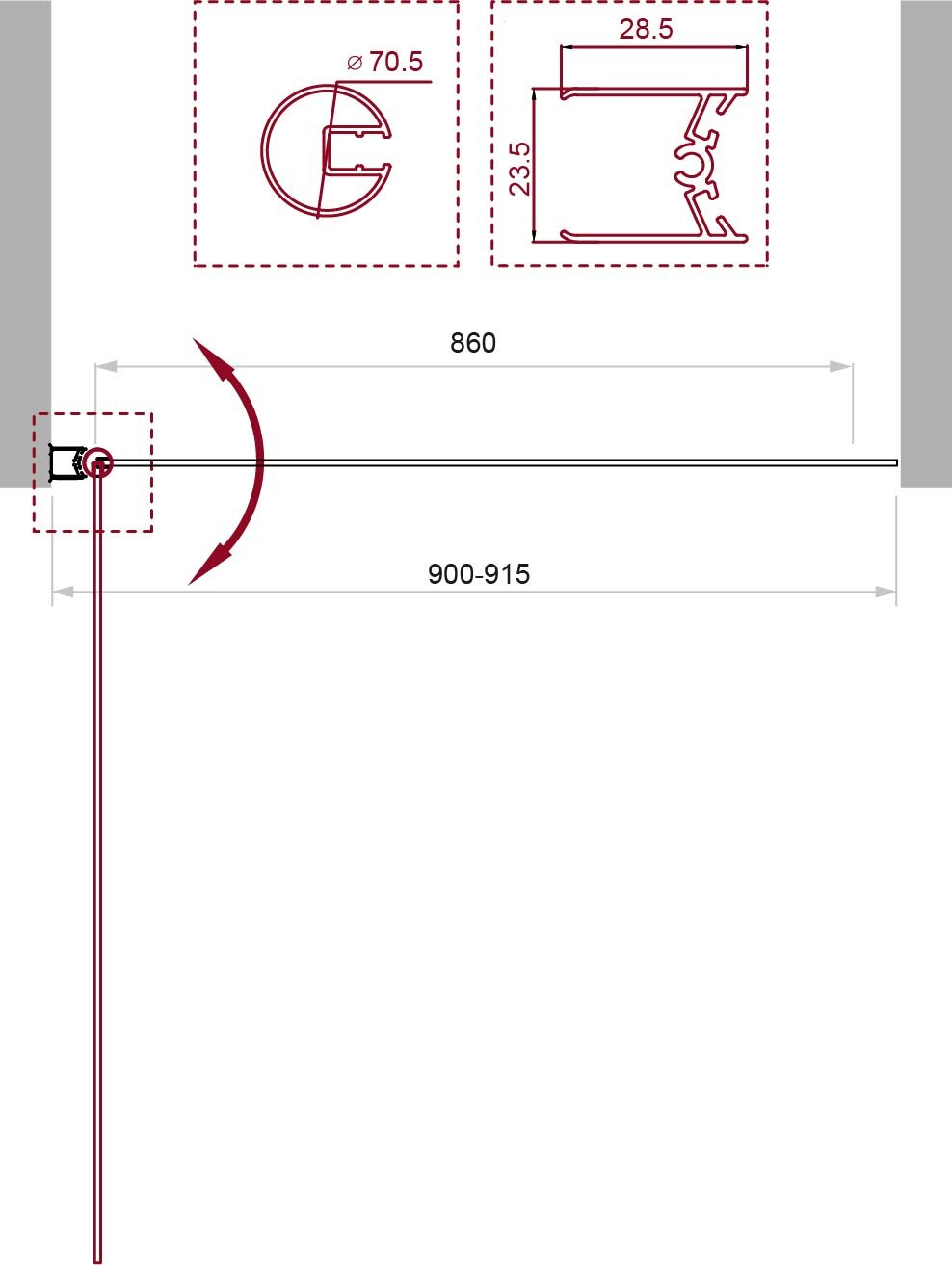 - Регулировка ширины предусмотрена за счет боковых профилей, что позволяет без проблем установить изделие даже при кривизне стен.