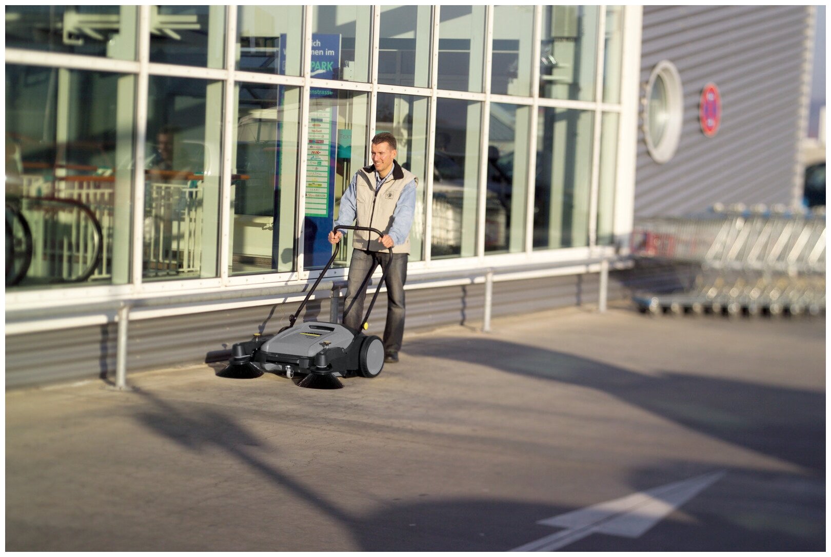 Ручная подметальная машина - эта простое и надежное решение для уборки больших помещений. Вращение щеток KARCHER осуществляется с помощью колес.Высота щеток регулируется и позволяет работать с разными поверхностями. Для сбора мусора, предусмотрен контейнер объемом 20 л. Производительность составляет 2800 квадратных метров в час. Машина компактно складывается и ее можно хранить в вертикальном положении.