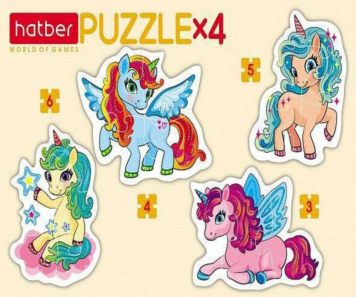Набор пазлов 4 в 1 Единорожки Хатбер