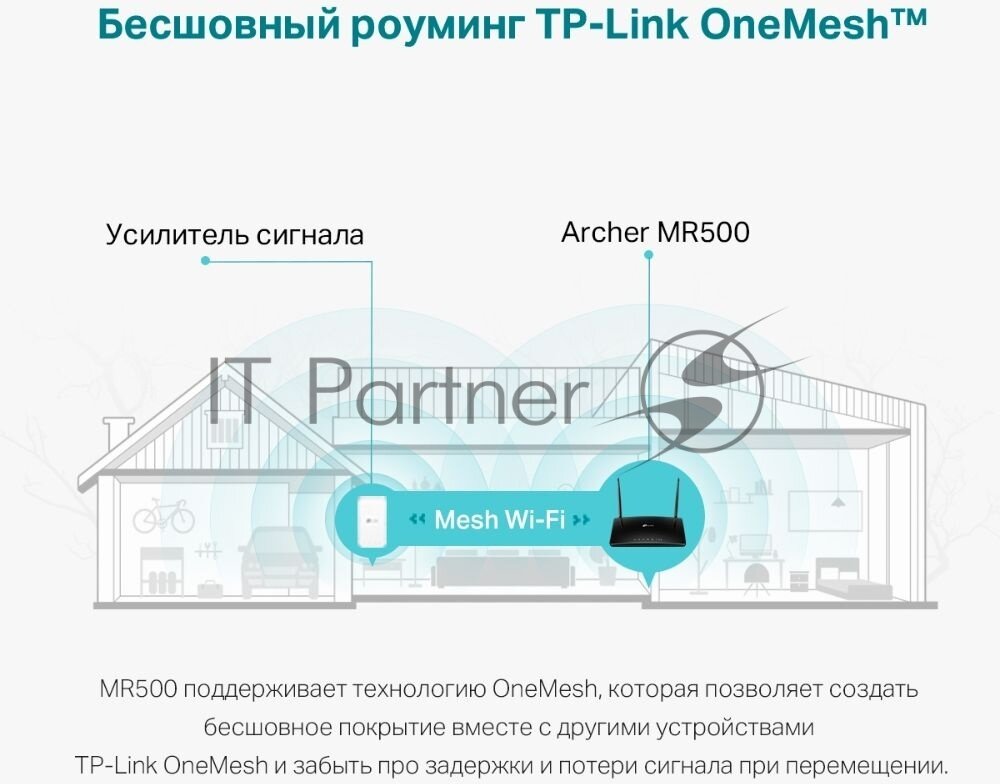 Беспроводной маршрутизатор TP-LINK Archer MR500 802.11aс 867Mbps 2.4 ГГц 5 ГГц 3xLAN черный