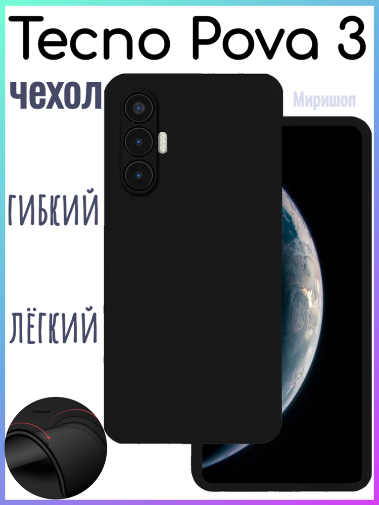 Модель: Чехол-крышка для Tecno Pova 3, термополиуретан, черный