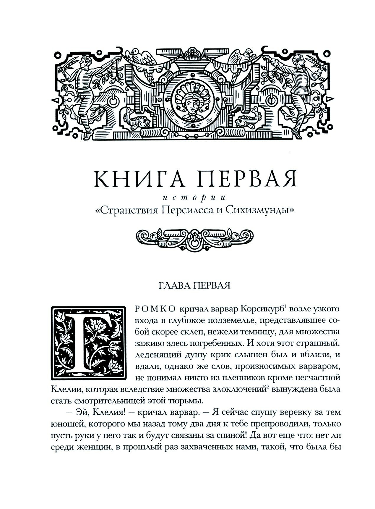 Перед читателем — последний роман великого Мигеля де Сервантеса, увидевший свет после обеих частей «Дон Кихота» и невольно оказавшийся в его тени, хотя совершенно незаслуженно. Этот роман Сервантес писал на смертном одре — уже «занося ногу в стремя», — и постарался передать в нем самое важное, то, к чему шел, в раздумьях и размышлениях, всю свою жизнь. Так родилось самое насыщенное смыслами, самое глубокое сочинение испанского гения, представляющее собой квинтэссенцию всех его взглядов.
