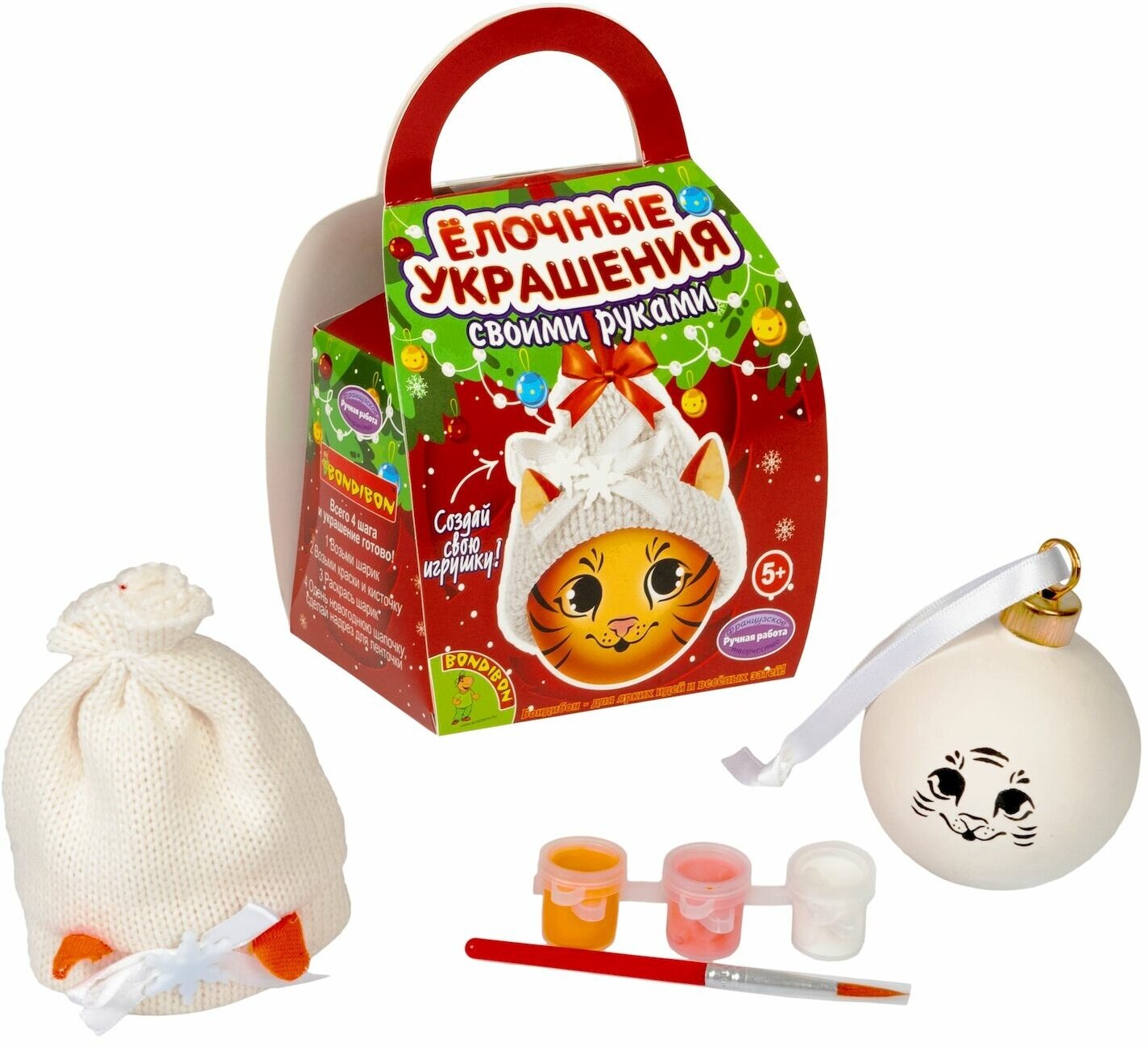 Набор для творчества шар-подарок "Тигренок" из серии "Французское творчество Ручная работа" Bondibon - это идеальный способ сделать креативный подарок своими руками. В нем есть все необходимое для росписи: керамический шарик, разноцветные краски с кисточкой и новогодняя шапочка с ушками. Рекомендуемый возраст 5+. Фантазируйте и создавайте новогоднюю игрушку вместе с набором для творчества шар-подарок "Тигренок" Bondibon.