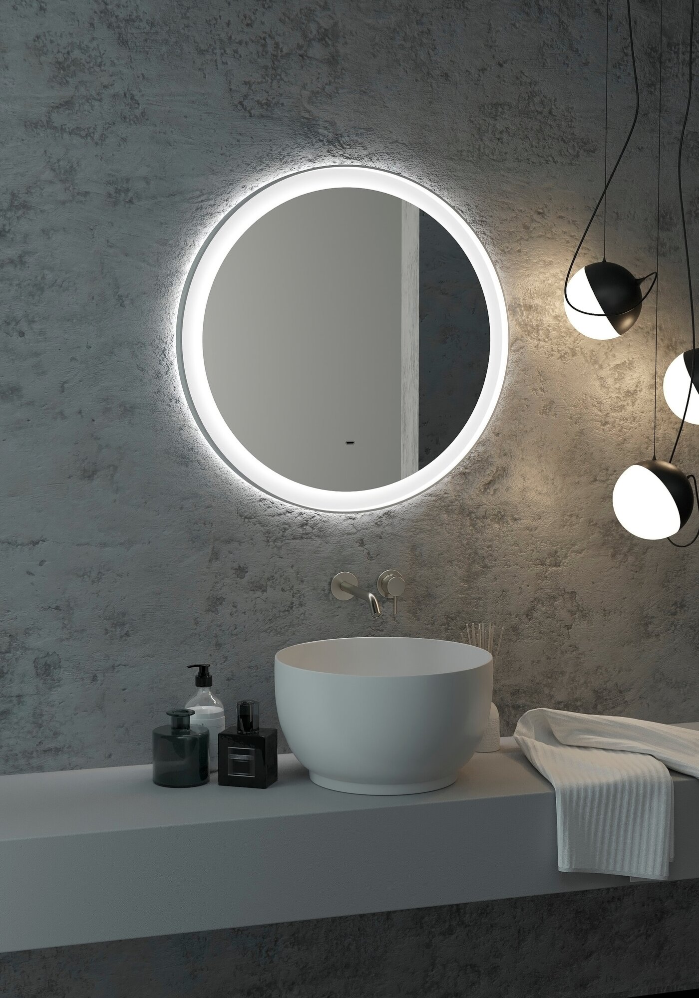 Зеркало с подсветкой "Planet white Led" D 700 с бесконтактным сенсором - это настенное зеркало нового поколения, изготовленное из полотна толщиной 4 мм от ведущего европейского производителя AGC. При изготовлении используется светодиодная лента с плотностью диодов 120 шт/м и мощностью 9,6 Вт/м, обеспечивающая яркое и равномерное свечение. "Planet white Led" D 700 с бесконтактным сенсором - это круглое зеркало для ванной шириной 70 см, высотой 70 см. Вес зеркала с упаковкой - кг. Для управления подсветкой используется бесконтактный cенсор. Температура двойной подсветки холодная - 6000К, потребляемая мощность 25 Вт. Основа для изделия - корпус из МДФ в пленке белого цвета. Срок гарантии - 2 года.