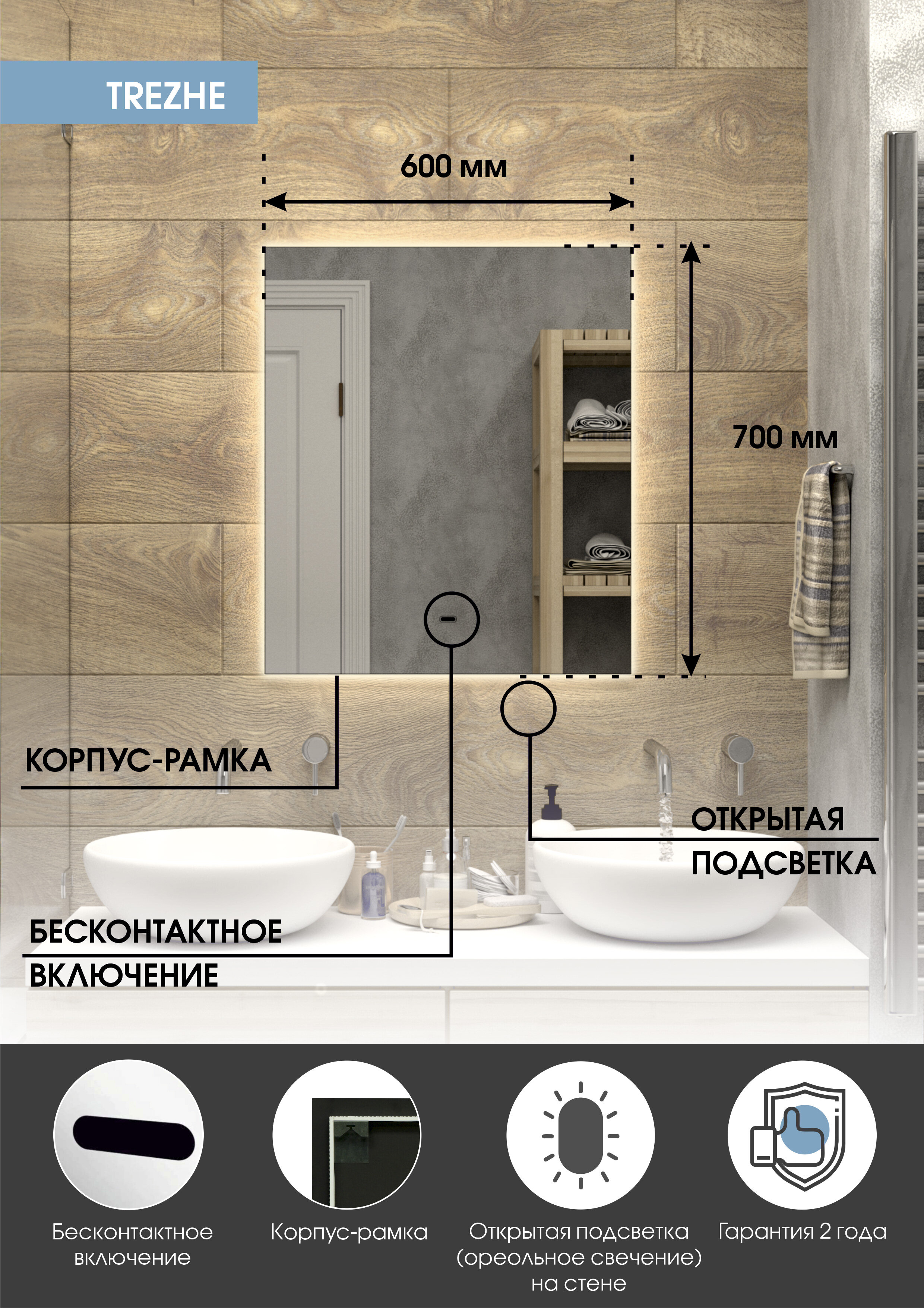 Модель: Trezhe 600x700 ЗЛП542 с подсветкой с бесконтактным выключателем