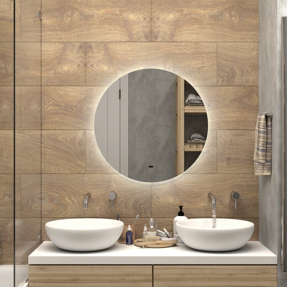 Зеркало с подсветкой "Ajour" D 800 с бесконтактным сенсором и холодной подсветкой - это настенное зеркало нового поколения, изготовленное из полотна толщиной 4 мм от ведущего европейского производителя AGC. При изготовлении используется светодиодная лента с плотностью диодов 120 шт/м и мощностью 9,6 Вт/м, обеспечивающая яркое и равномерное свечение. "Ajour" D 800 с бесконтактным сенсором и холодной подсветкой - это круглое зеркало для ванной шириной 80 см, высотой 80 см. Вес зеркала с упаковкой - 8,5 кг. Для управления подсветкой используется бесконтактный cенсор. Температура ореольной подсветки холодная - 6000К, потребляемая мощность 29 Вт. Основа для изделия - корпус из ударопрочного пластика белого цвета. Срок гарантии - 2 года.