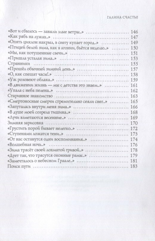 Галина Счастье - петербургская поэтесса, представительница такого нового зарождающегося стиля как стихотворный паркур. Одиночество большого города, с его суетой и бесконечным движением, выливается грустными нотками в ее стихотворных произведениях. Пишет стихи в стиле импрессионистов, выражая образы яркими красочными мазками. Её первое стихотворение было написано ещё в седьмом классе для эпиграфа к сочинению. С детства впечатлительная и эмоциональная по натуре она умела подмечать нюансы и находить изюминки в отношениях между людьми, одушевлять природу необычными образными сравнениями. А позднее свои наблюдения перенесла на бумагу и упорядочила в виде стихотворных сборников. Вы держите в руках один из них.