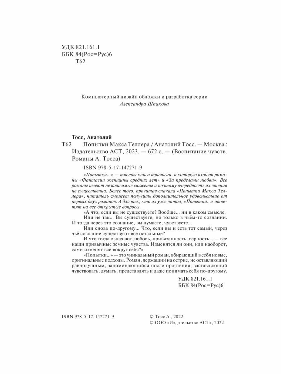 Книга: Попытки Макса Теллера (Анатолий Тосс); Издательство АСТ, 2022