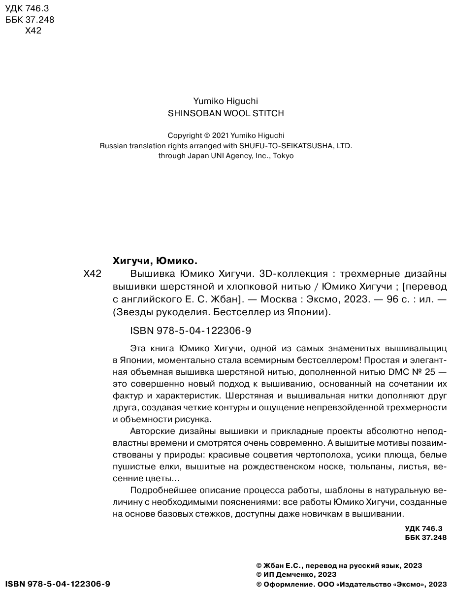 Сервис сравнения цен СкидкаГИД предлагает сравнить цены на товар «Книга: Вышивка Юмико Хигучи. 3D-коллекция. Трехмерные дизайны вышивки шерстяной и хлопковой нитью (Юмико Хигучи); Эксмо, БОМБОРА, 2023»