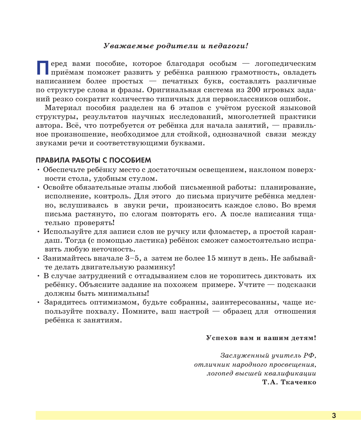 «Чтобы вести ребенка за собой, нужно встать не впереди, а рядом с ним», — считает Татьяна Ткаченко, логопед высшей квалификационной категории и заслуженный учитель РФ. Пособия, разработанные для подготовки дошкольников, уже успели завоевать любовь как родителей, так и педагогов по всей России. Татьяна Ткаченко воспитала не одно поколение дошколят и вашему ребенку поможет качественно подготовиться к школе с помощью комплекта из 5 книг-пособий.