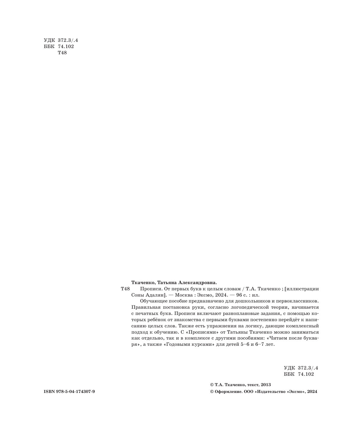 Первые прописи маленького отличника. От первых букв к целым словам (нов.оф.) (Ткаченко Татьяна Александровна); ООО "Издательство "Эксмо", 2024