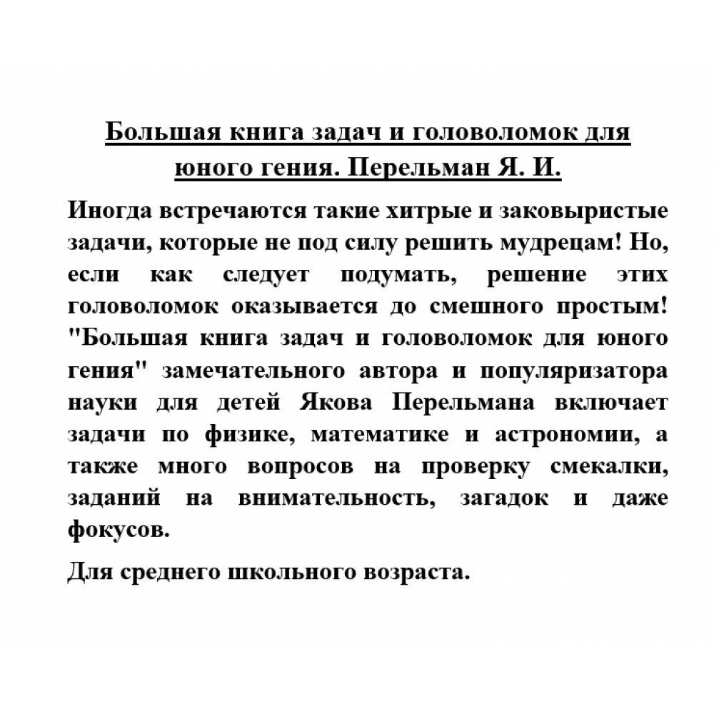 Большая книга задач и головоломок для юного гения (Перельман Яков Исидорович); ИЗДАТЕЛЬСТВО "АСТ", 2023