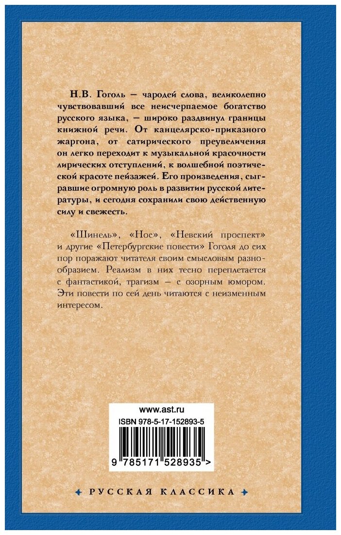 Николай Васильевич Гоголь открывает тайные стороны великого города. Показывает обратную сторону медали первого впечатления. Удивительные мистические истории, в которых жители различных мест, люди самых разных социальных статусов сталкиваются с приведениями, с нечистой силой, теряют и внезапно возвращают на прежнее место части своего тела. В центре этих историй – социальные и политические проблемы, проблемы бедных людей, талантливых и многое другое. Великая книга, великие судьбы, великий писатель и великий Петербург. Издание удобное, легкое и яркое, однозначно советую приобрести!