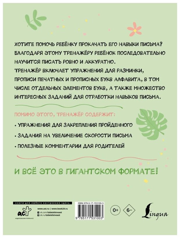 Гигантский тренажёр по обучению письму: от азов до каллиграфического почерка + увеличиваем скорость письма (Группа авторов); Издательство АСТ, 2023