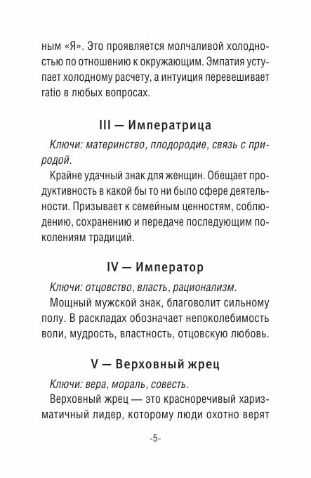 Вы сможете найти ответы на самые волнующие вопросы. Трактовки карт продолжают и дополняют подход знаменитой классической колоды Уэйта. Символы карт легко запоминаются, поэтому они подойдут и для новичков, осваивающих карты Таро, и для профессионалов.