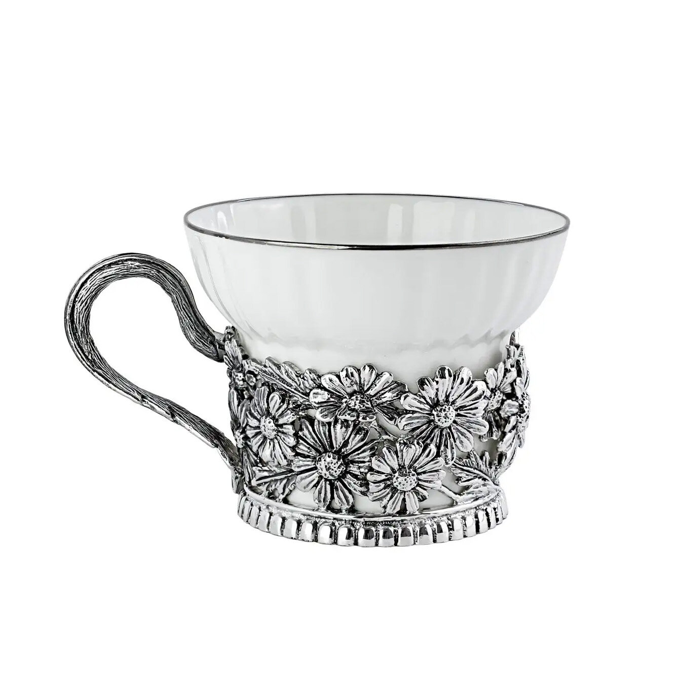 Чашка чайная Кольчугинский мельхиор Ромашки (КМ670ЧШ06)