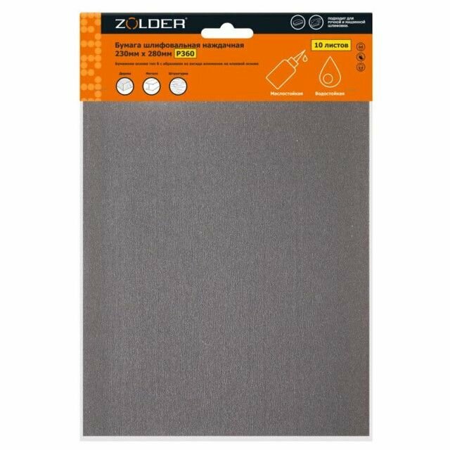 бумага шлифовальная наждачная ZOLDER 230х280мм Р360 10шт арт.Z-103-2328-360