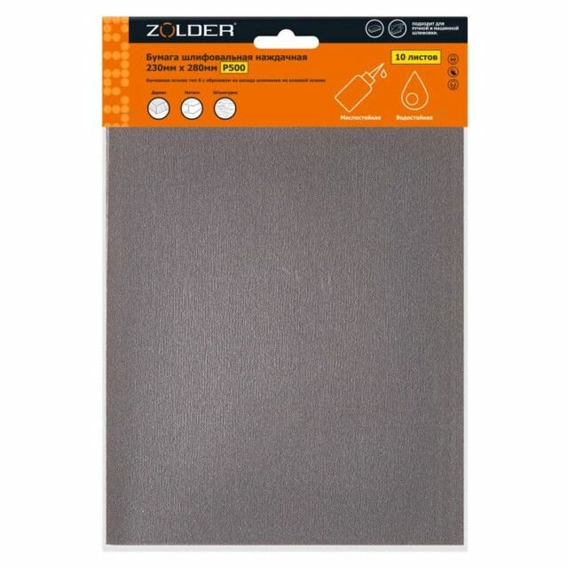 бумага шлифовальная наждачная ZOLDER 230х280мм Р500 10шт арт.Z-103-2328-500