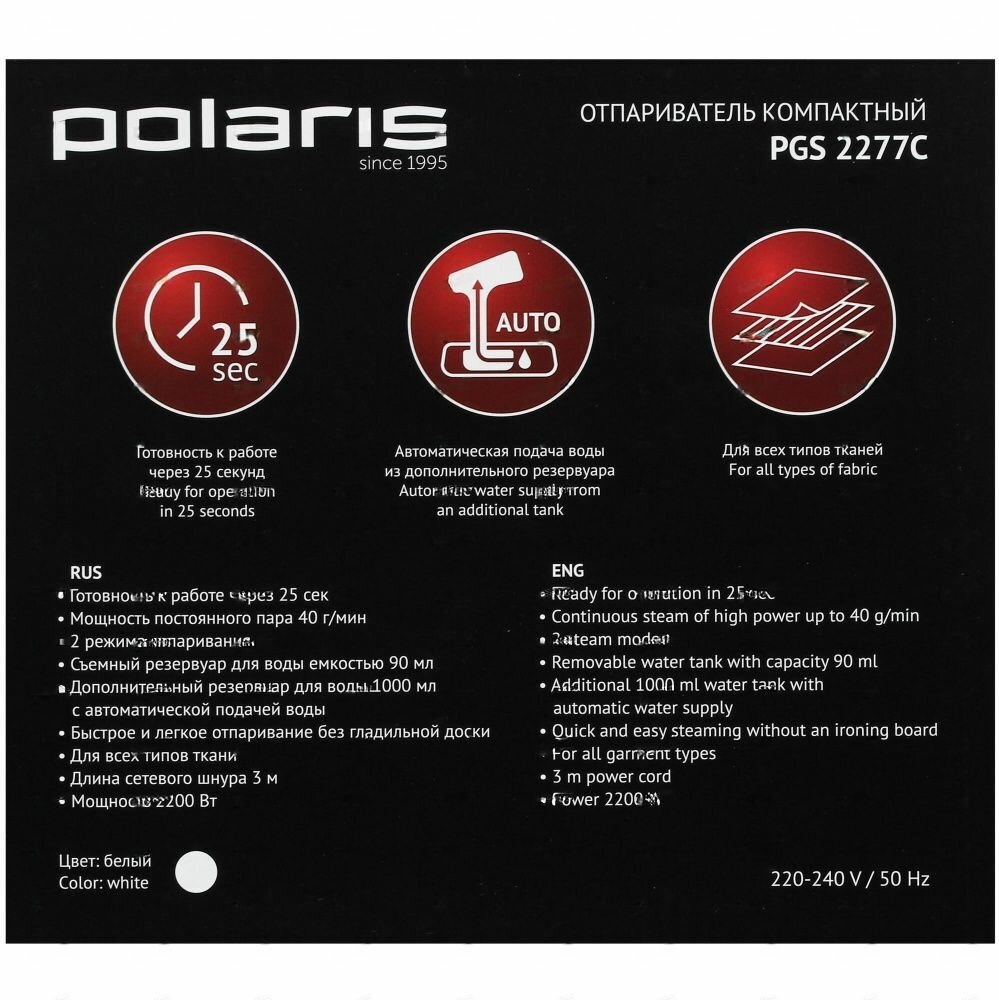 отпариватель ручной POLARIS PGS2277C 2200Вт 40г/мин белый PGS 2277C
