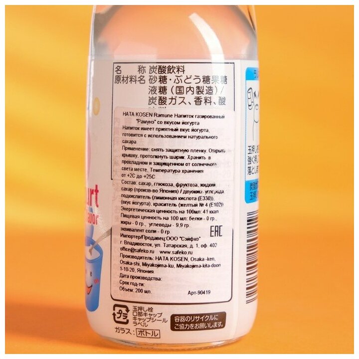 Напиток газированный безалкогольный "Рамунэ" со вкусом йогурта (стекло 200 мл) Hata Kosen (Сторк139)