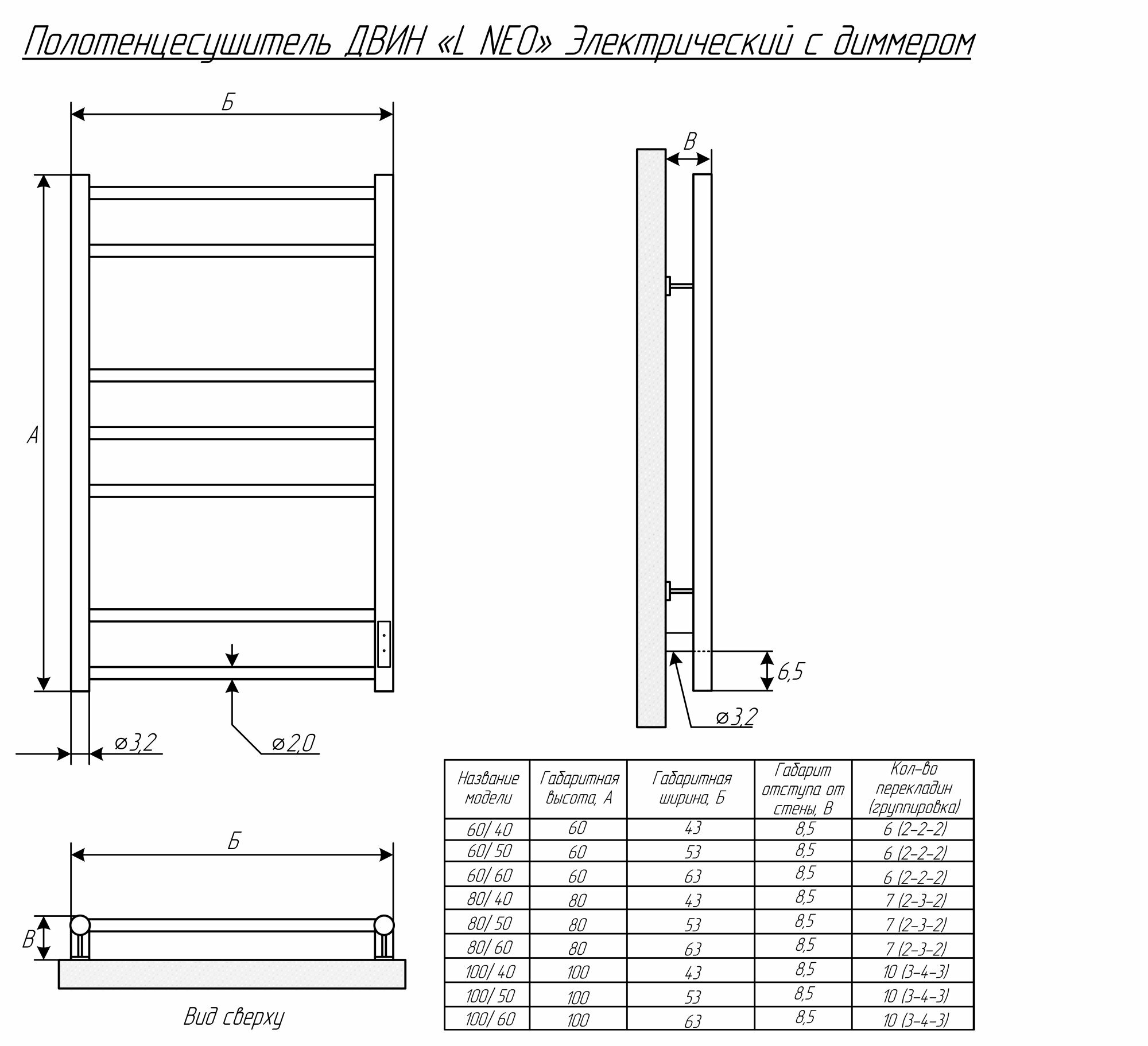 Электрический полотенцесушитель ДВИН L с диммером из серии "NEO"