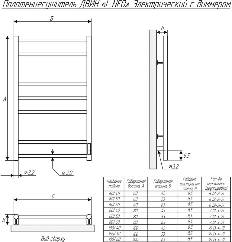 Электрический полотенцесушитель Двин L neo 60х50 4656759179144 (размер: 60x50 см)