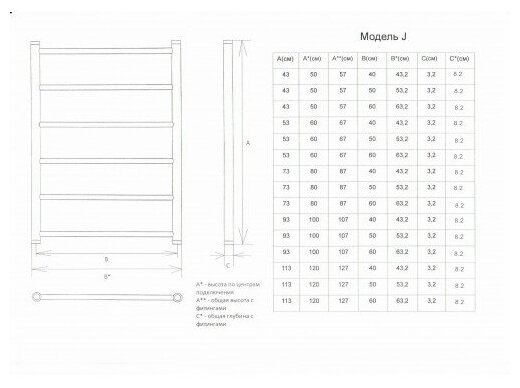 Водяной полотенцесушитель Двин J 80х50 4627086035809 (размер: 80x50 см)