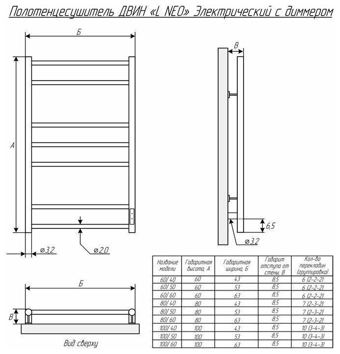 Электрический полотенцесушитель ДВИН J с диммером из серии "NEO"