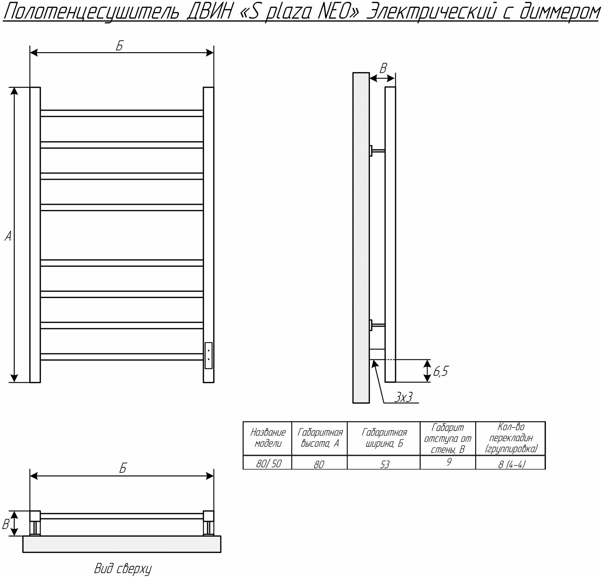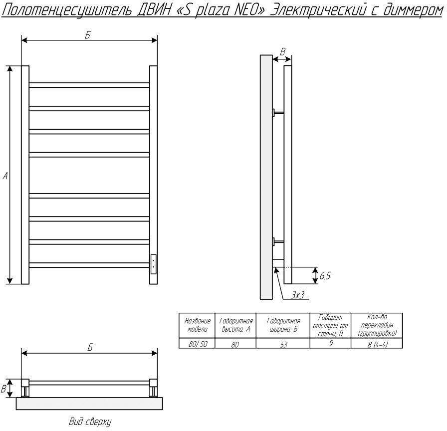 Электрический полотенцесушитель Двин S plaza neo 80х50 4656759178819 (размер: 80x50 см)