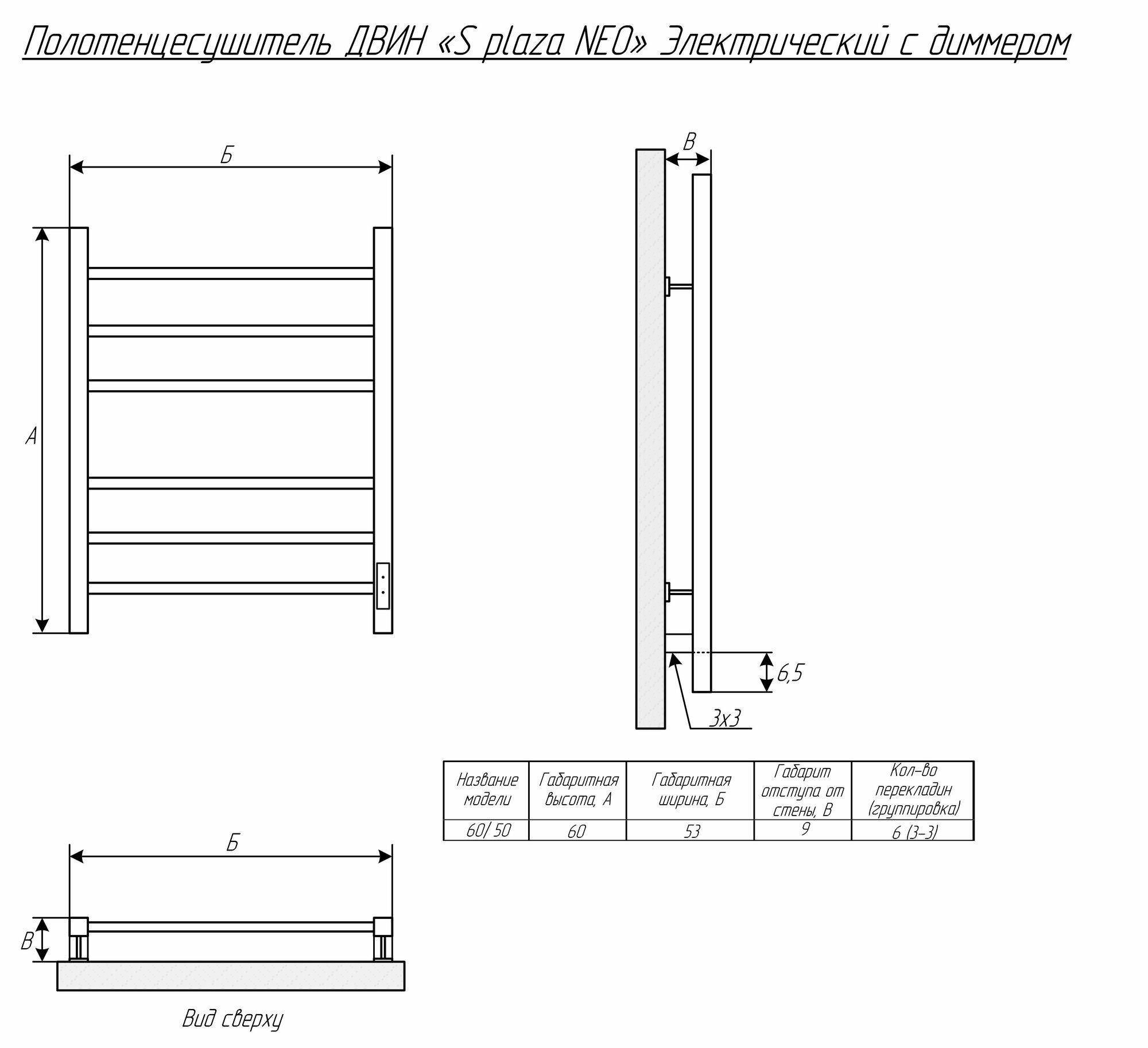 Электрический полотенцесушитель Двин S plaza neo 60х50 4656759179298 (размер: 60x50 см)