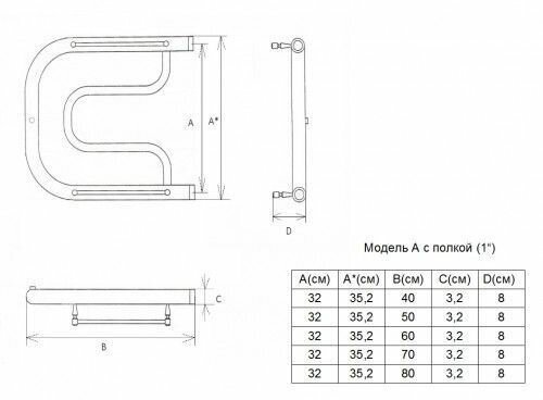 Полотенцесушитель водяной Двин A 320х700 4627159980128 c полкой 1"-1/2" К0 полированный