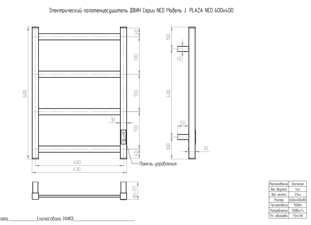 Полотенцесушитель Двин 4657763754686 J plaza neo 60/40 К предназначен для подогрева и сушки полотенец, а также для обогрева ванных комнат в квартирах, коттеджах и частных домах. Модель оснащена диммером и таймером. Изделие выполнено из нержавеющей стали, которая отличается прочностью, долговечностью и устойчивостью к перепадам температур.
