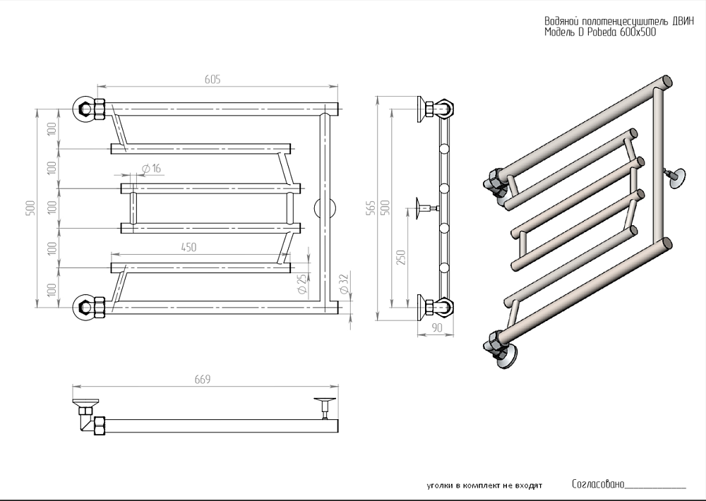 Полотенцесушитель водяной Двин D9 Pobeda 600х500