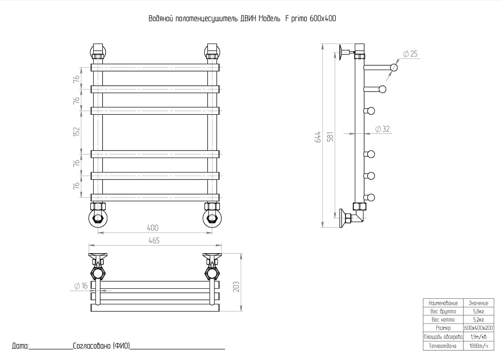 Водяной полотенцесушитель Двин F Primo 60х40 4627159980043 (размер: 60x40 см)