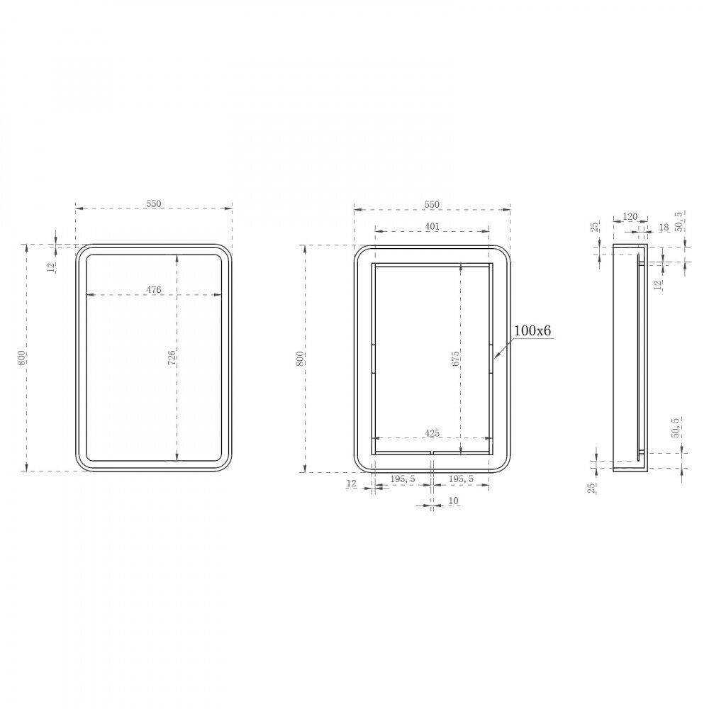 - Размер (ШхВхГ): 550х800х120 мм.