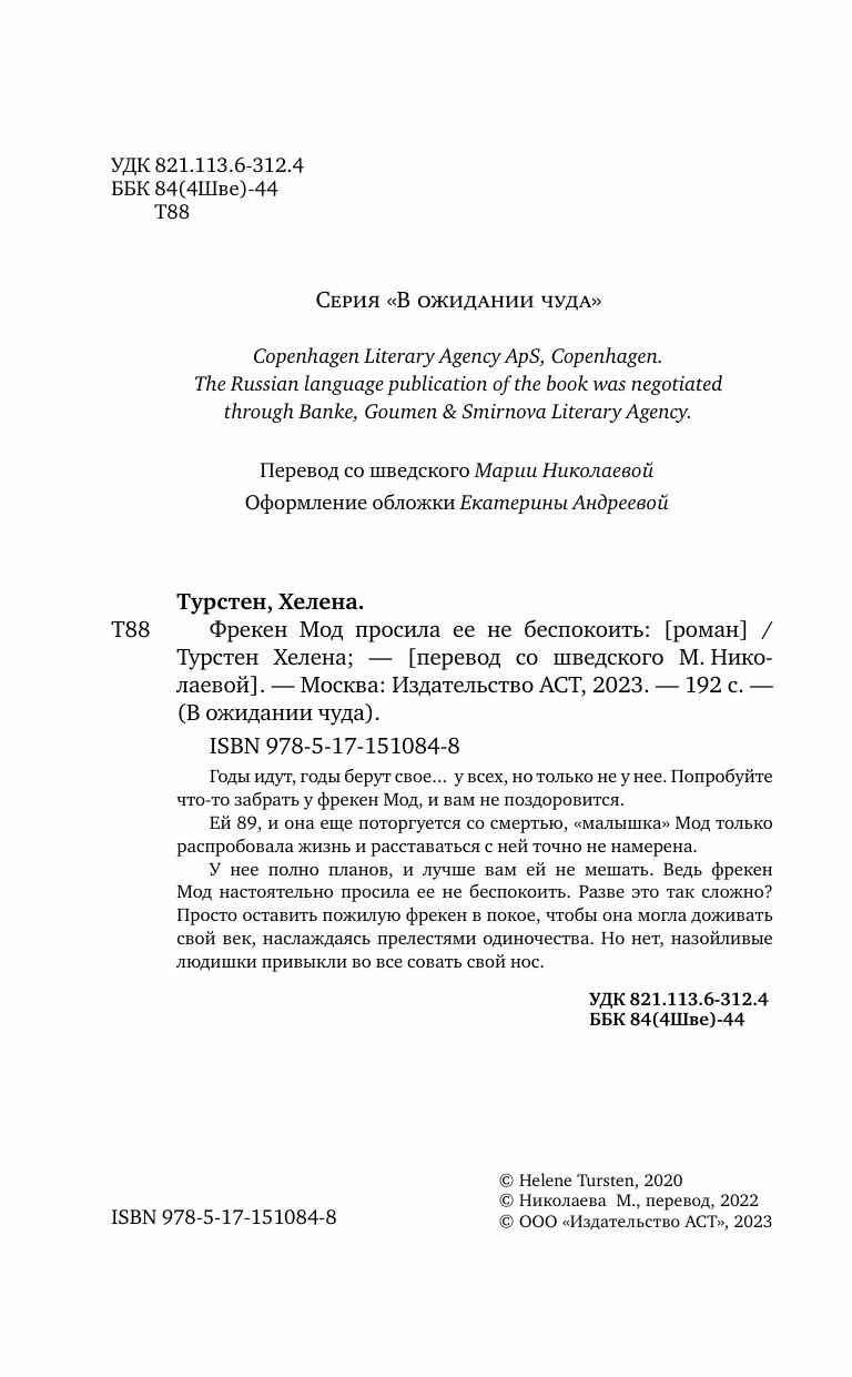 Фрекен Мод просила ее не беспокоить (Хелена Турстен); Издательство АСТ, 2020