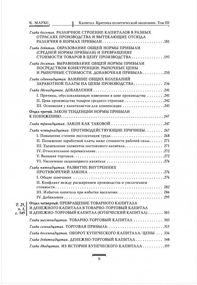 При работе над изданием был учтен опыт как классических советских изданий, так и последнего немецкого издания в рамках международного проекта MEGA. Текст III тома публикуется с уточненным переводом ряда мест и комментариями, очищенными от тенденциозных оценок прежних лет. В приложении публикуются фрагменты из "Теорий прибавочной стоимости", посвященные анализу теорий ренты и издержек производства Д. Рикардо, а также соответствующий проблематике III тома фрагмент главы о капитале из "Грундриссе". Текст III тома сопровожден двойной пагинацией на полях, а также указателем имен, уточненным по последнему немецкому изданию.