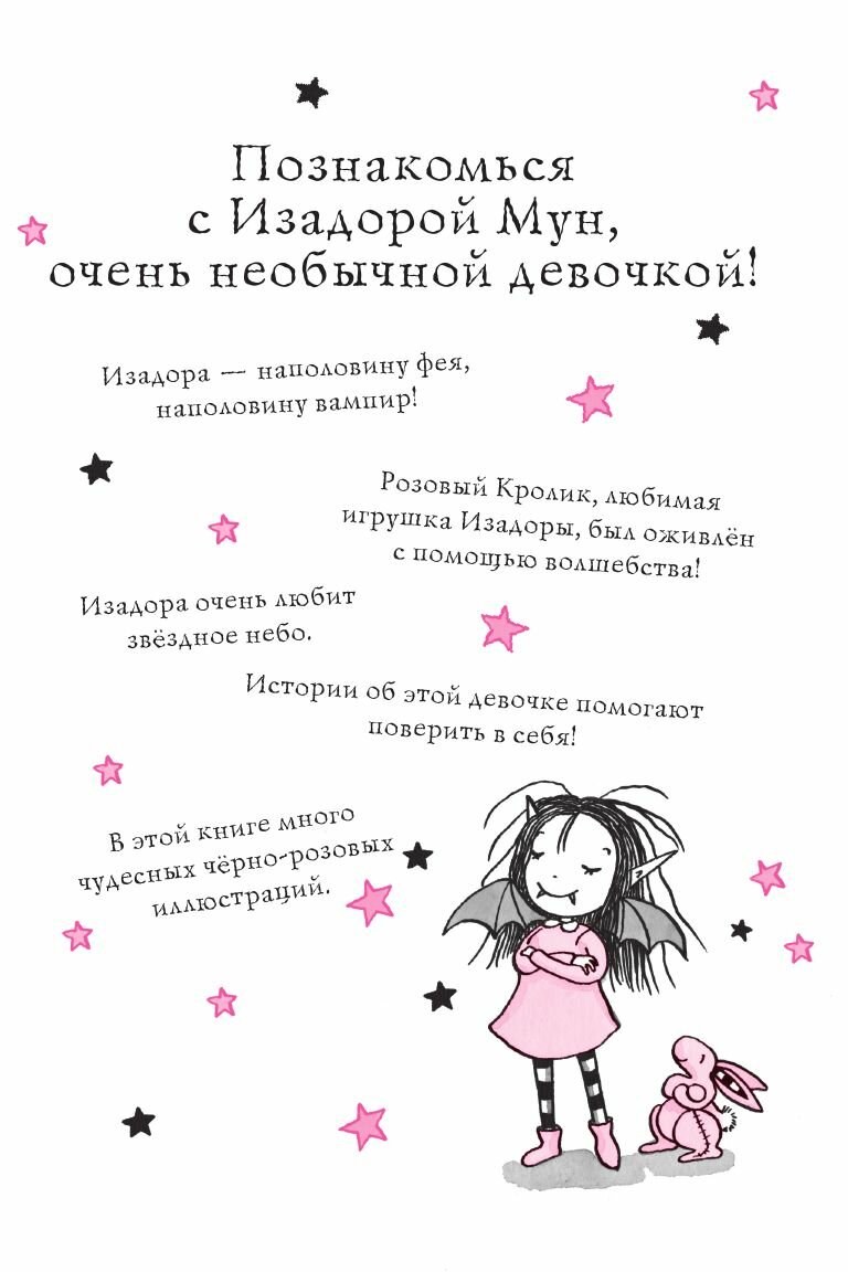 Вот и дождались мы 13 - й книги британской писательницы Гарриет Манкастер о необычной девочке Изадоре Мун, которая наполовину фея, наполовину вампир. В этой книге Изадора с папой через телескоп изучает звездное небо и знакомится с инопланетянкой по имени Нова, которой Изадора помогает найти ее лунного котенка. Книга, как и предыдущие из серии, с интересным сюжетом, легким слогом и красивыми черно - розовыми иллюстрациями. Ребенок читал ее не отрываясь. С нетерпением ждем следующую!