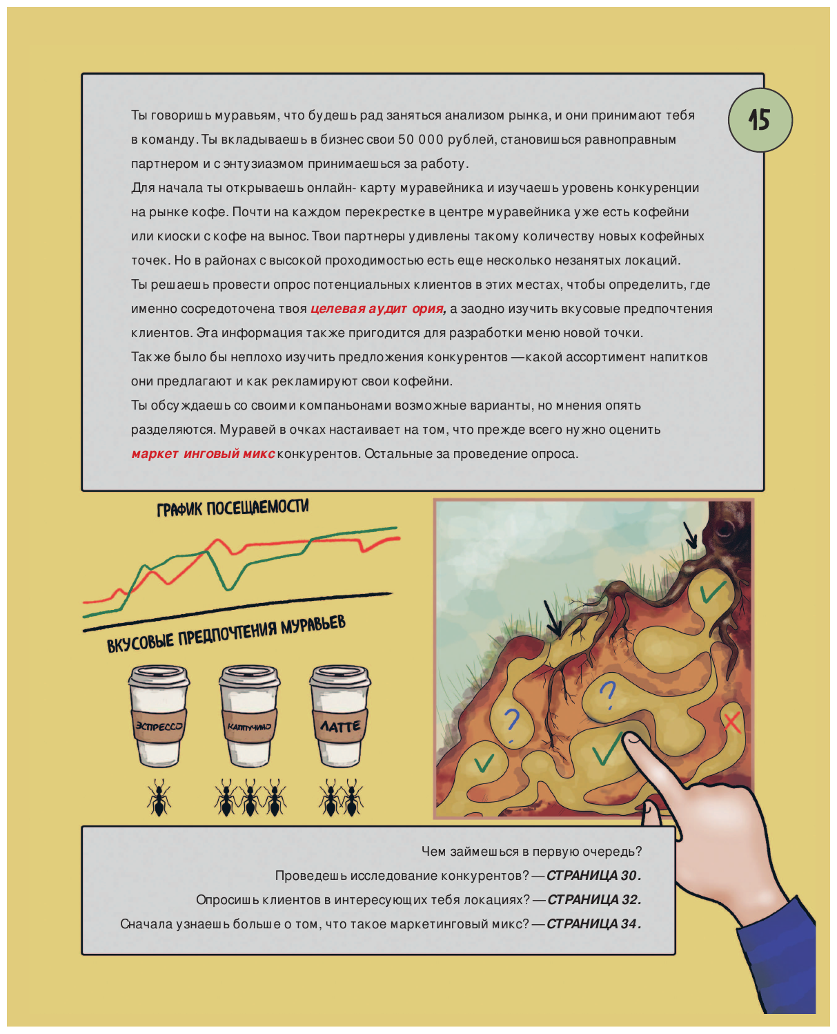 По сюжету книги, желание заработать деньги приводит маленького путешественника в сказочные миры. В каждом эпизоде юному предпринимателю придется сделать нелегкий выбор, от которого будет зависеть его судьба. Четыре увлекательные сюжетные линии позволят попробовать себя в разных сферах бизнеса — начинающие бизнесмены смогут запустить IT-стартап, открыть свою кофейню, заняться блогингом или электронной коммерцией. На пути к цели герою придется проявить целеустремленность и настойчивость, сразиться с ленью и преодолеть множество соблазнов «легких денег».